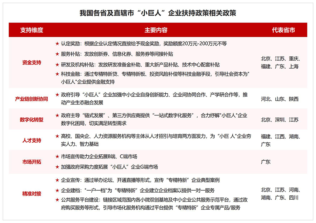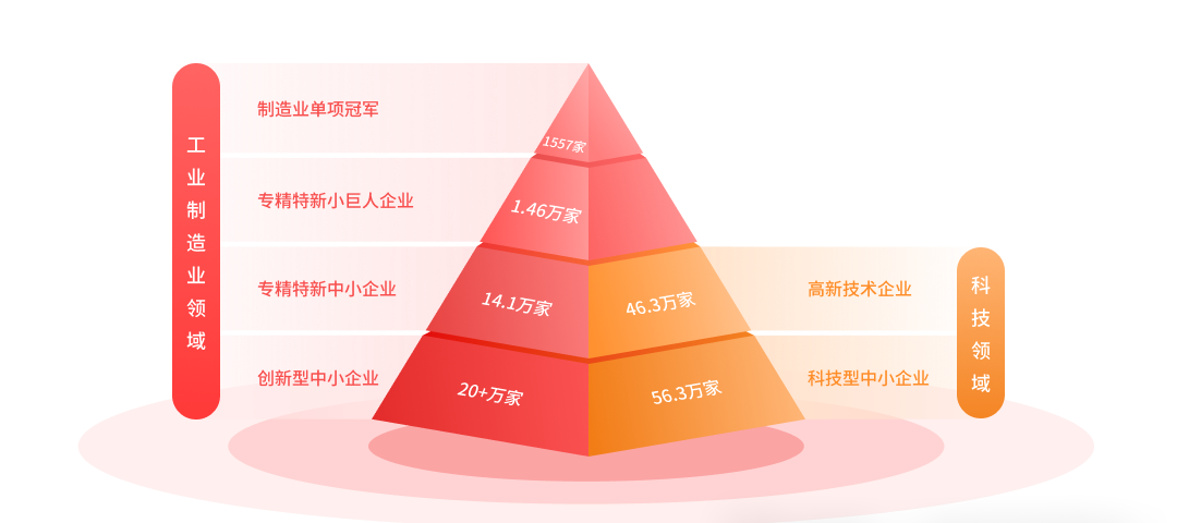 · 小巨人位于金字塔尖,政策倾斜力度最大,资源赋能最强。