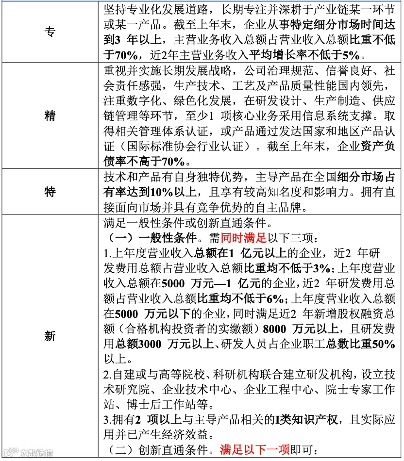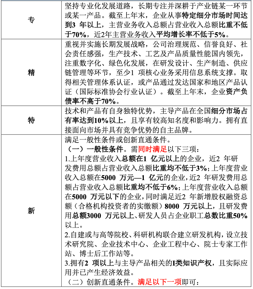 · 专精特新更看重“细分领域深耕”,适合在特定赛道做到一定规模的企业,也是国家重点支持方向!