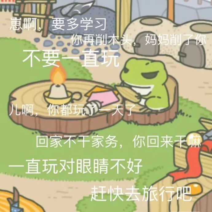 “出去”和“旅行”是蛙蛙们任性的日常,蛙爸蛙妈在微博的呼唤表达了对叛逆蛙儿子的担忧,但是蛙蛙在家看书和削木头的时候,难道不是你们怕蛙蛙在家憋坏了么?