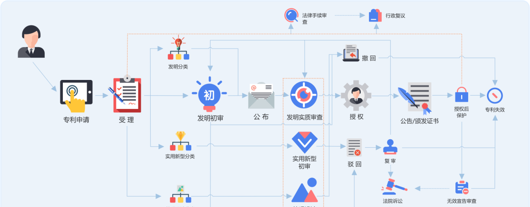 受理缴费后专利局开始初审,通常需要1-3个月。国家知识产权局主要对申请文件的完整性以及格式的合规性进行细致检查 。若收到审查意见通知书或者补正通知,申请人需在 30 日内完成答复。