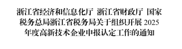 2025年浙江省高新技术企业认定工作开始了!今年申报分两批次,截止时间分别为7月31日、8月31日。想要申报高企或需要复审尽快行动起来!