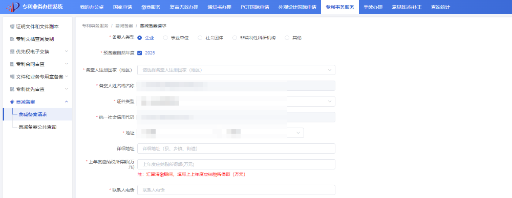 费减前提:申请人或专利权人每年的10月1日起可以办理下一年度的费减备案,例如 2025年10月1日起,可进行2026年专利费减备案。费减备案成功后,企业才可以申请费用减缴。