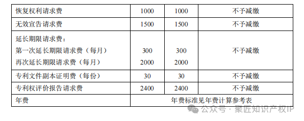 注:对专利开放许可实施期间的专利年费减缴15%,同时适用其他专利收费减免政策的, 可以选择适用最优惠的政策, 但不得重复享受。