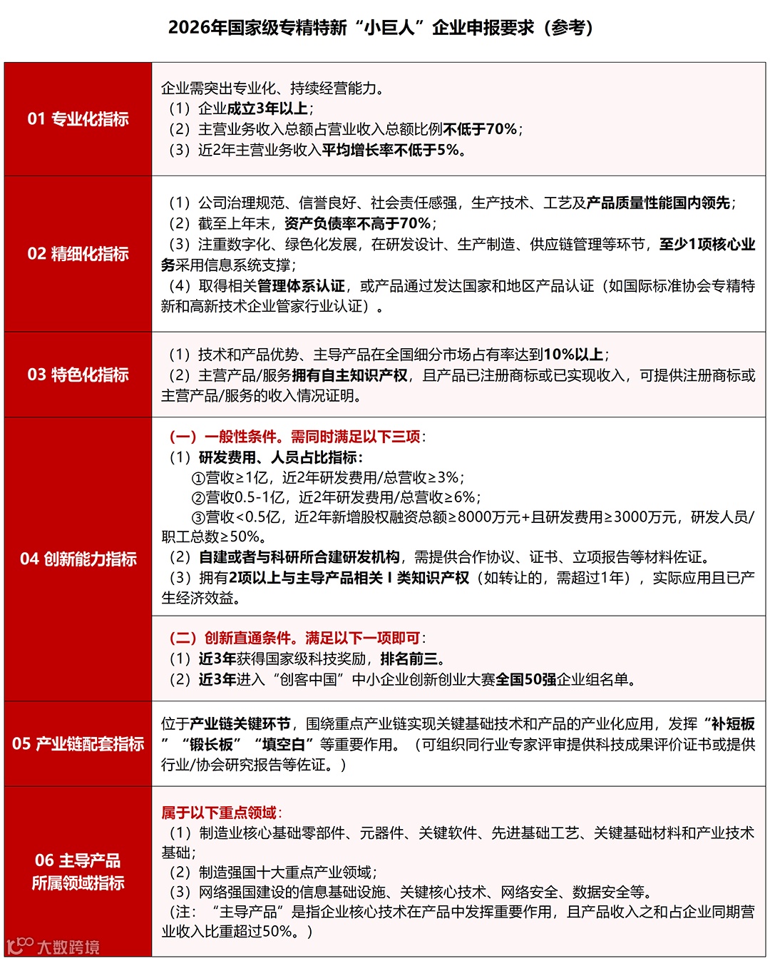 目前第七批小巨人基本已经尘埃落定,2026年想申报第八批专精特新“小巨人”的企业现在就可以进行准备了!