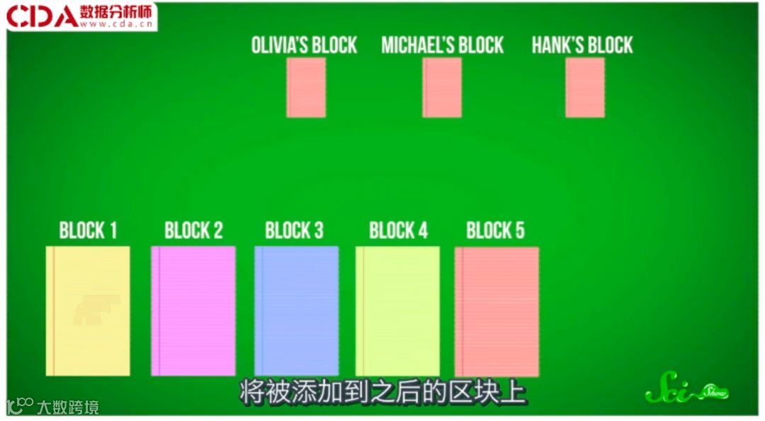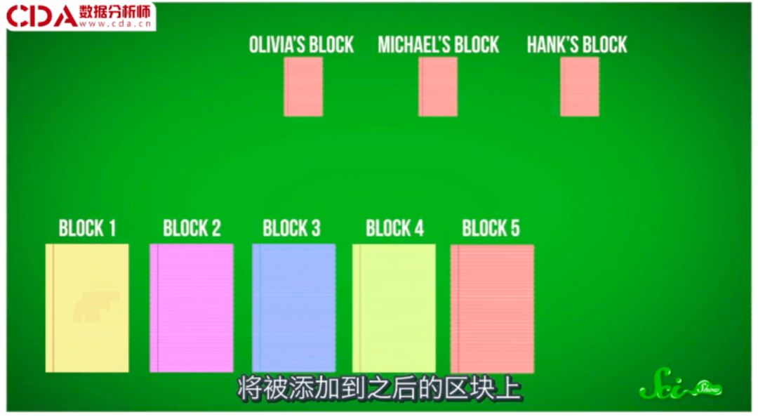 所有记录区块链的人会将你的交易添加到目前的区块上。