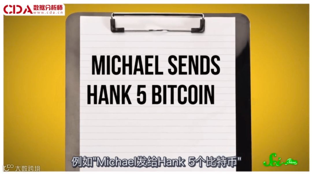 因此当你给他人发送比特币时,不像发送文件,你实际上是将交易记录在大型的分类账上。例如"Michael发给Hank 5个比特币”。