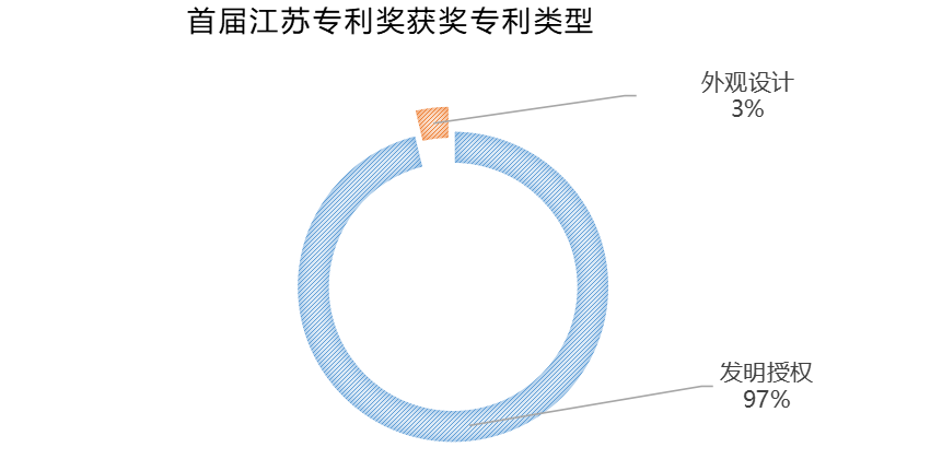 我们先看首届江苏专利奖获奖情况,共评选出金奖项目9项,银奖项目20项,优秀奖项目48项。总体上江苏专利奖97%为发明专利,3%外观设计,没有实用新型获奖,这说明对于发明专利的认可度是比较高的。聚匠建议在专利选择上优先考虑发明专利,其次是外观专利,一般不要考虑申报实用新型的专利奖了。