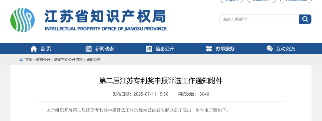 第二届江苏专利奖评选申报正式开始了!作为江苏省知识产权领域最高奖项,每两年评一次,不仅有最高 30 万元奖励,更能给企业专利贴上 “省级标杆” 的标签!初步推荐8月8日截止,想要申报的企业抓紧了!
