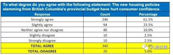 房地产行业一项针对业内人士的调查显示,85%受访的专业人士认为“投机税收政策损害了全省消费者的信心。”