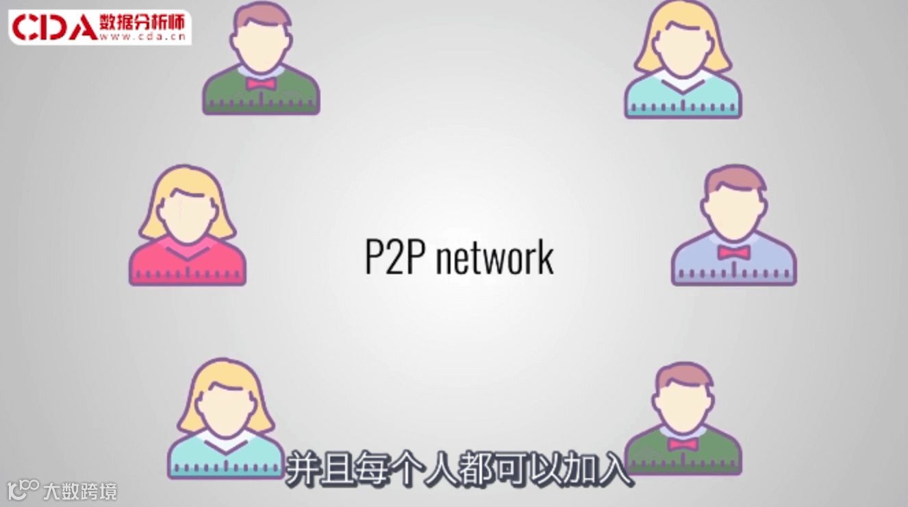 区块链还有一种保护安全性的方法,那就是分布式。不采用中心化实体管理区块链,区块链采用的是P2P网络,并且每个人都可以加入。