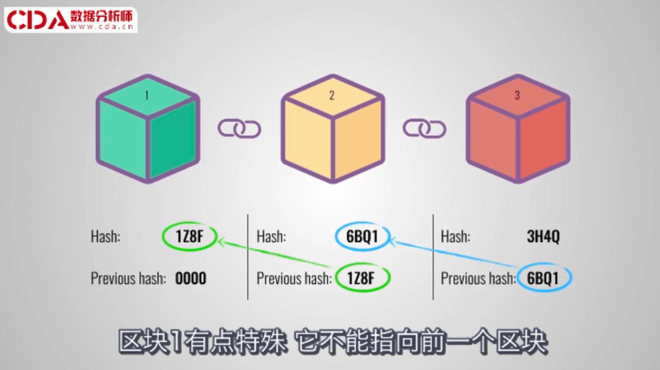 区块中第三个元素是前一个区块的哈希值。这个元素构成一系列区块,并且这项技术使区块链十分的安全。