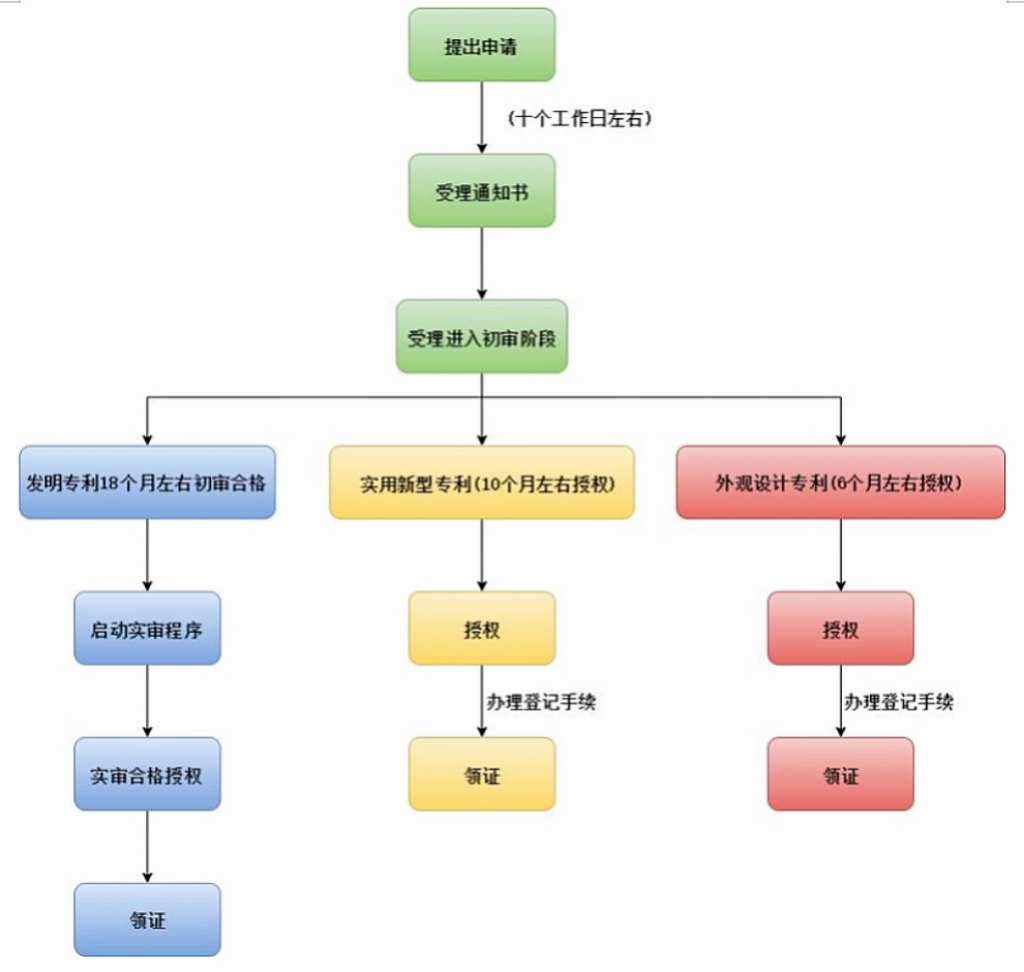 外观设计专利或实用新型专利,通常需要3—6个月时间,初审合格即授权;发明专利是在实质审查合格后被授权。
