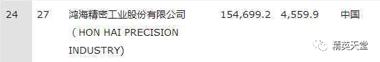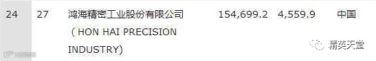 24与27是排名,分别对应2017年与2016年。154699是营收,4599是利润,单位是百万美元。