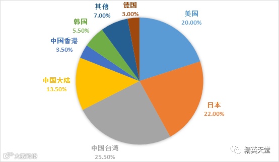 排名第一的是中国台湾省,一共有51家。其中,鸿海精密是台湾唯一一家营收超过千亿美元的公司。它在大陆的名字你一定知道,叫富士康。主要从事手机、电脑等电子产品代工,它是苹果全球最大的供应商。