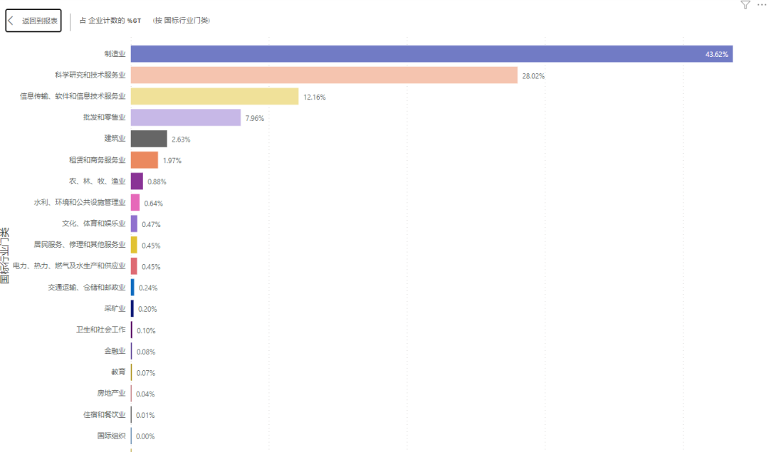从行业分布情况看:高新技术企业主要集中在1.制造业、2. 科学研究和技术服务业、3.信息传输、软件和信息技术服务业、4批发和零售业。通过分析高新技术企业的行业分布情况有助于企业了解市场格局,选择适应自身发展战略的领域。