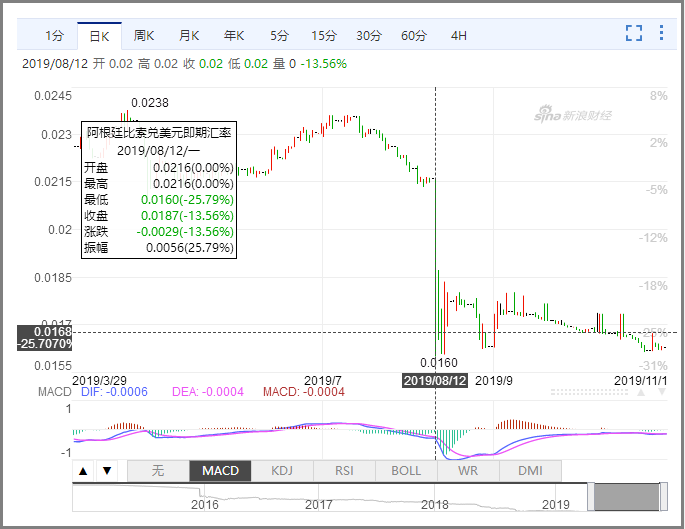 8月11日,阿根廷总统初选结果公布,现任总统马克里意外的初选失败,反对派候选人费尔南德斯大幅领先,阿根廷股市、汇市一度遭受重创。阿根廷比索对美元汇率一度暴跌超过20%,创下2015年以来最大单日跌幅。