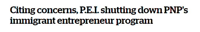 在收到举报和联邦执法机构开始对爱德华王子岛省企业移民项目存在弄虚作假问题进行调查后,爱德华王子岛省政府直接宣布彻底取消企业移民项目(Provincial Nominee Program)。