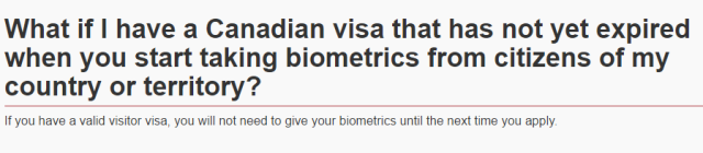 加拿大开始对我的国家实施生物信息采集时,我已经持有了加拿大签证会如何?