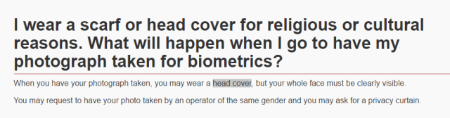 因为宗教原因,我必须戴着围巾/帽子。照相时怎么办?