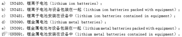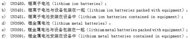 f.每个锂电池芯或锂电池的所属类型证明需满足UN38.3试验要求;