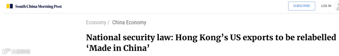 香港南华早报报道:香港出口美国商品将需要重新标为“中国制造”