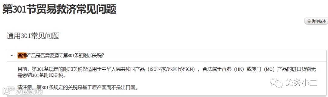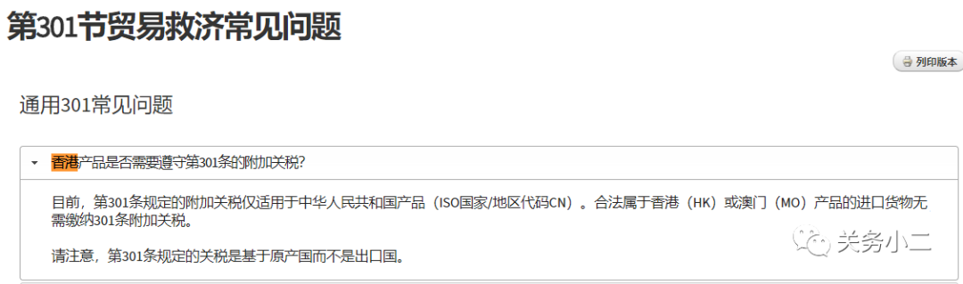 香港产品是否需要遵守第301条的附加关税?