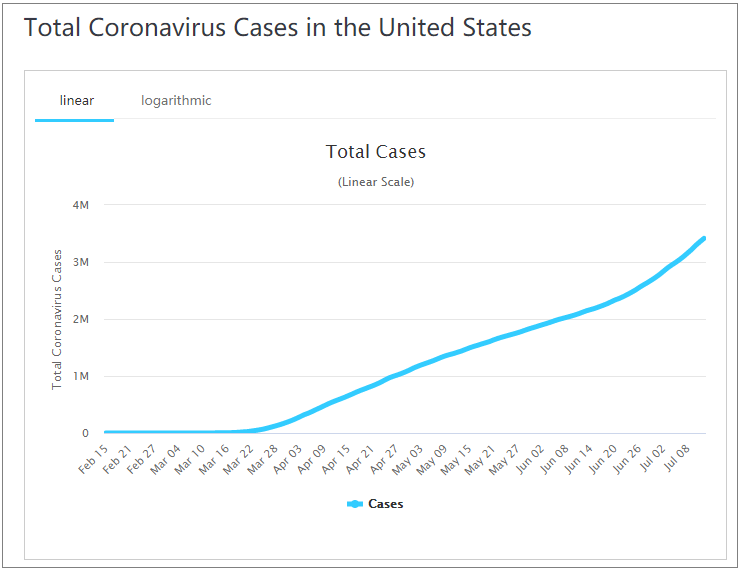 根据worldometer网站实时统计数据,截至北京时间7月13日6时30分左右,美国累计确诊新冠肺炎病例3410592例,累计死亡137765例