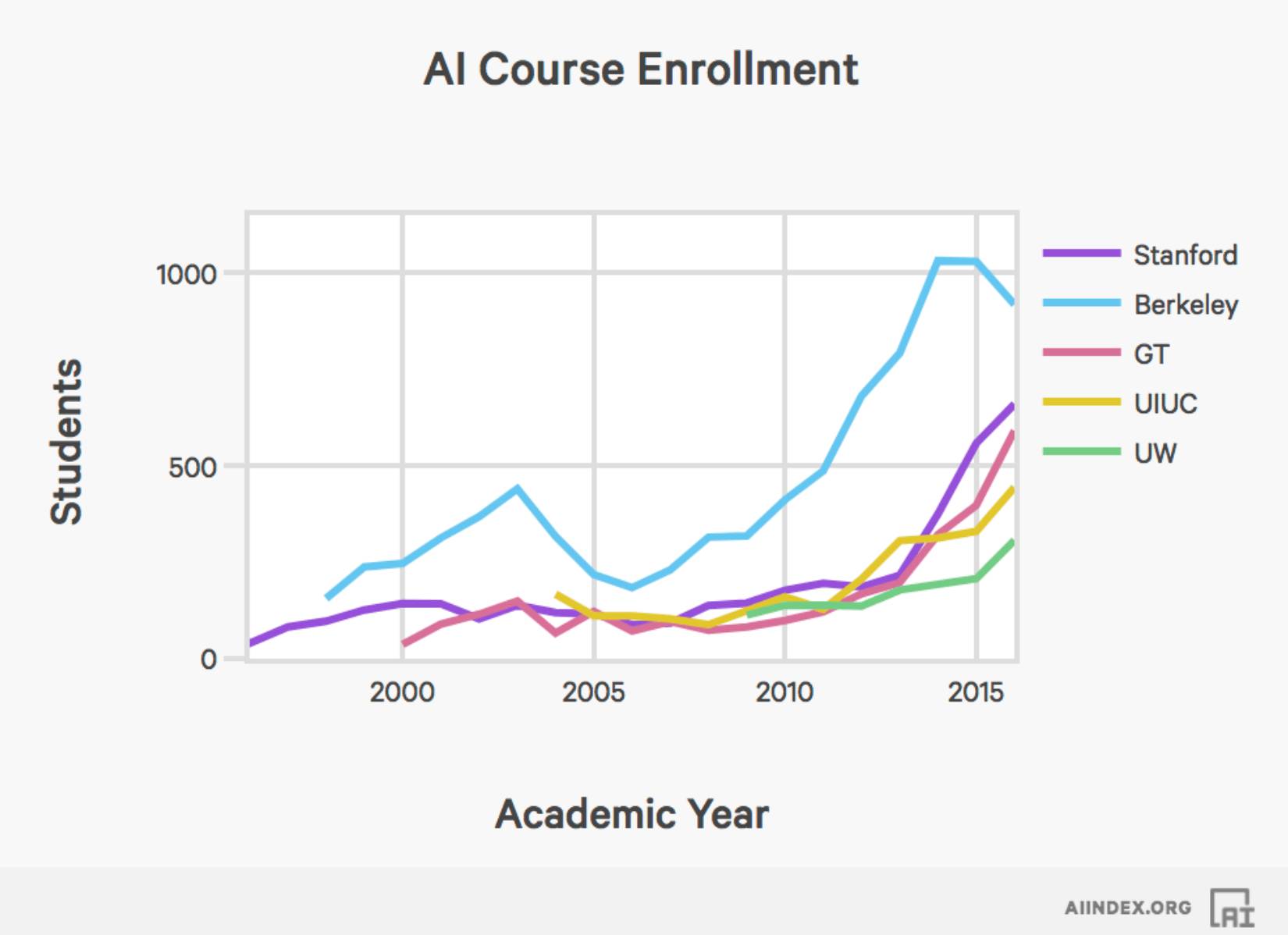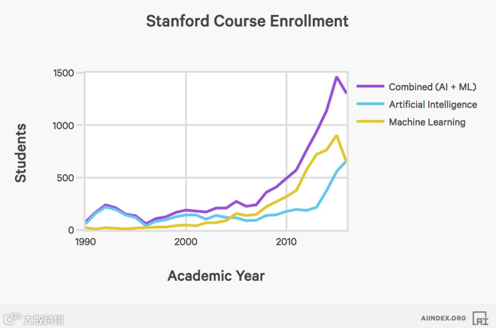 自1996年以来,斯坦福大学的 AI 课程选课人数增加了 11 倍。