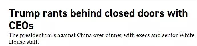 报道称美国总统川普在7日晚上和一些企业高管、白宫高级官员共进晚餐时,对中国进行了一番猛烈的抨击。