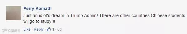 “川普领导下的美国未来就是个愚蠢的梦。。。中国学生会很愿意去其他国家留学!”