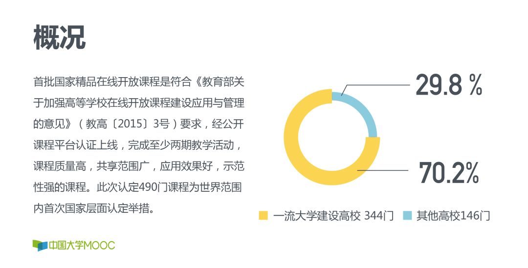 教育部经过半年的评定,将中国所有的慕课课程(大型在线开放课程)做了评定,并于1月15日正式公布了这490门最值得一学的国家精品在线开放课程名单。这些课程基本以985/211名校的课程为主,覆盖文史哲、工科、理学等多个学科领域。