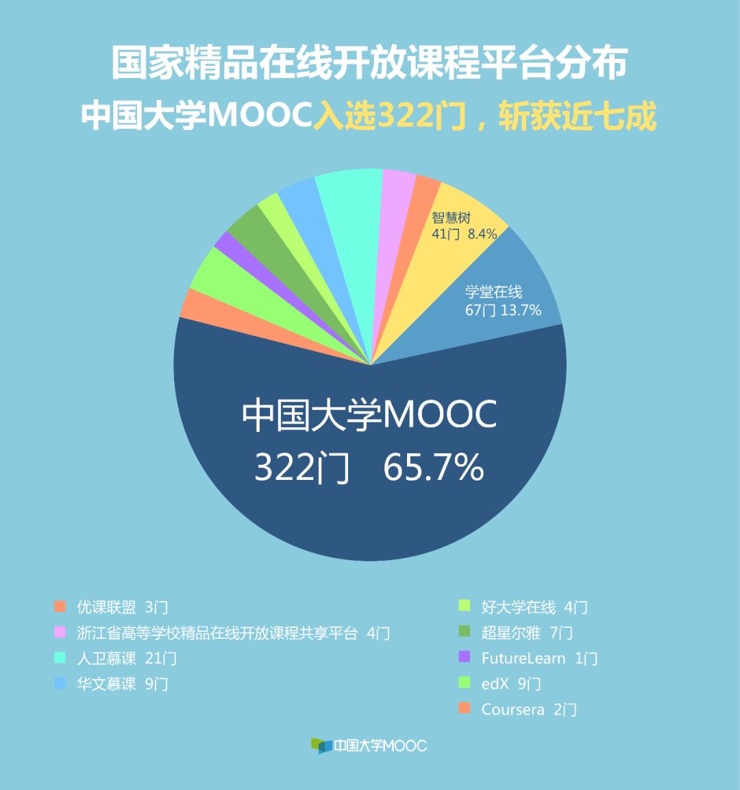 这次教育部认可的国家精品好课中,中国大学MOOC入选课程322门,超过其余11所平台入选课程数总和,占比近七成,成为拥有最多国家精品在线课程的慕课平台。