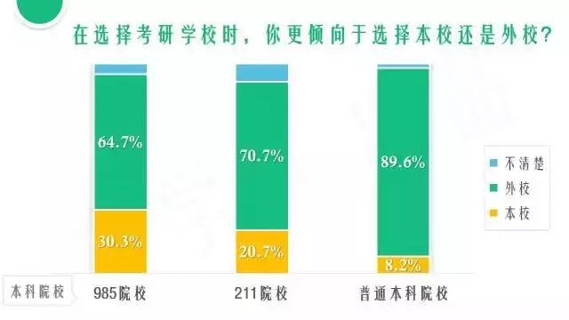 在有考研意向的同学中,学校水平越高,报考外校的比例就越低。