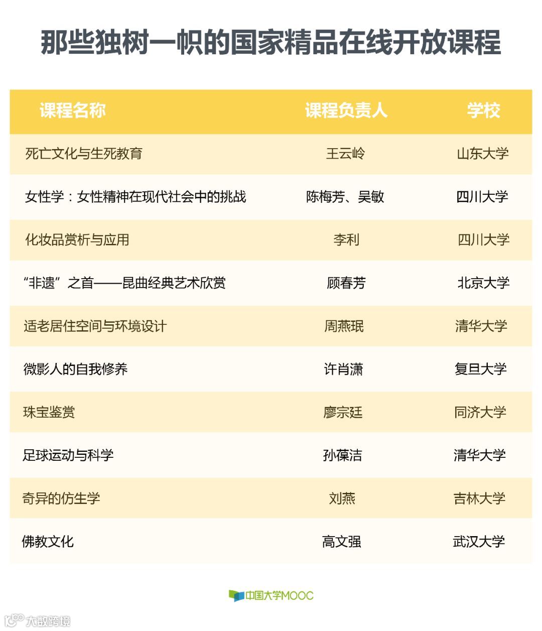 接下来让我们具体来看看这个名单,看看你的母校的课程有没有入选?是不是有哪些熟悉的课你曾经上过?又有哪些国家级的精品在线开放课程课值得我们学习的?