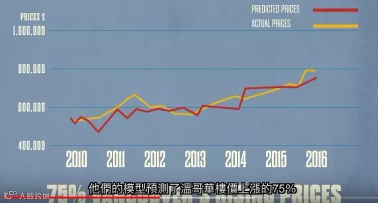 过去3年温哥华房价上升了60%,多伦多升了40%。