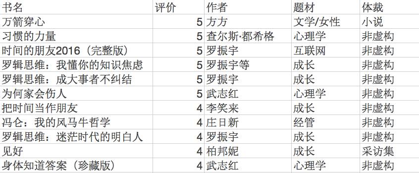 这里,把5颗星和4颗星的书给大家列举一下: