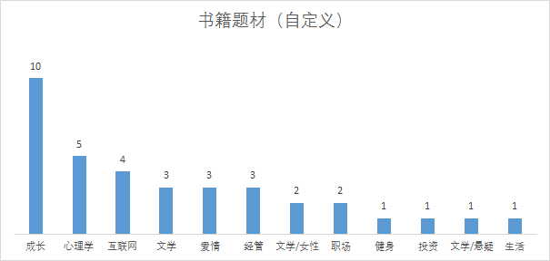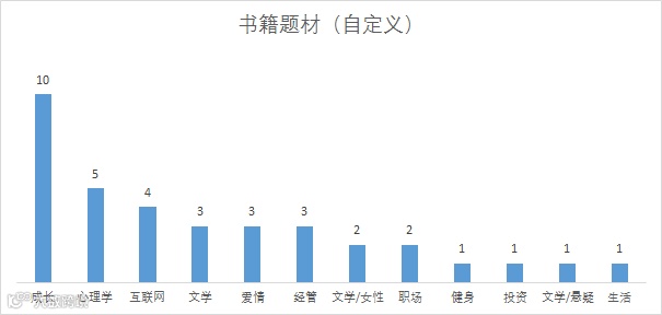 好啦,至此,数据整理完成,那么下一步咱们就来分析看看。我都喜欢读什么样的书——这里我用的是所有的数据(无论是否读完),只要是开始读了的书,就说明是我非常感兴趣的,由此看看自己都喜欢什么类型的书。