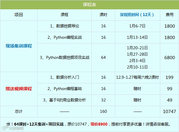 深圳《Python数据挖掘项目实战》训练营