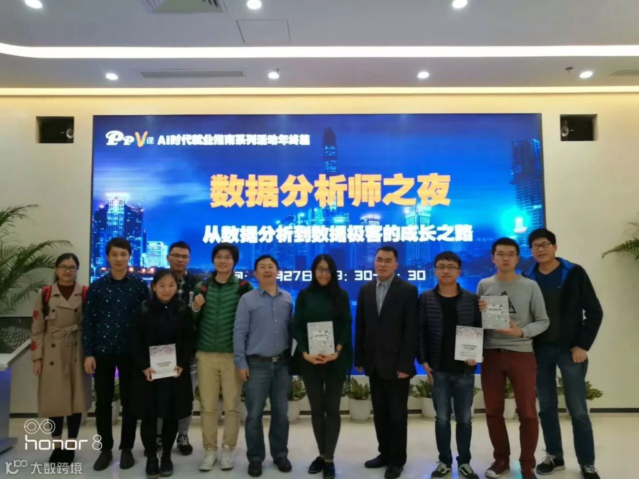 2017年12月27日晚,PPV课联合众学网、深圳视界技术(八爪鱼)、数据城堡(Data Castle)在深圳南山区科技园软件大厦一楼举办了一场“数据分析师之夜”活动,本次活动主要研讨“大数据和人工智能背景下如何做好职业和生涯规划”,活动邀请了职业规划教练夏琳女士、腾讯高级算法工程师Robin参加,并得到了Data Castle和软件大厦党群服务中心的大力支持。