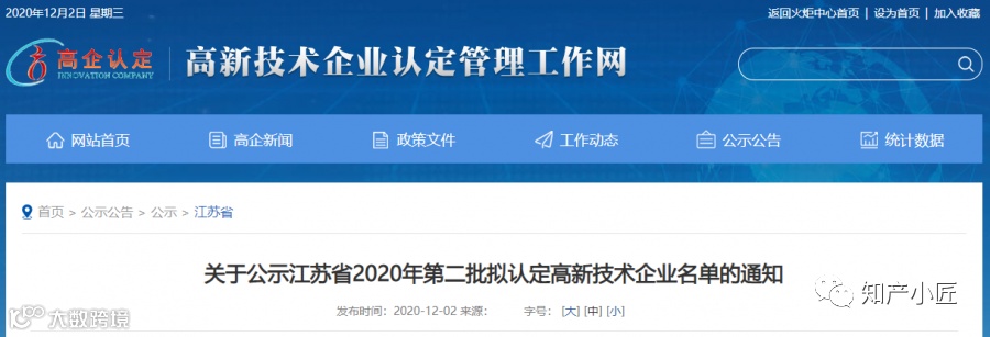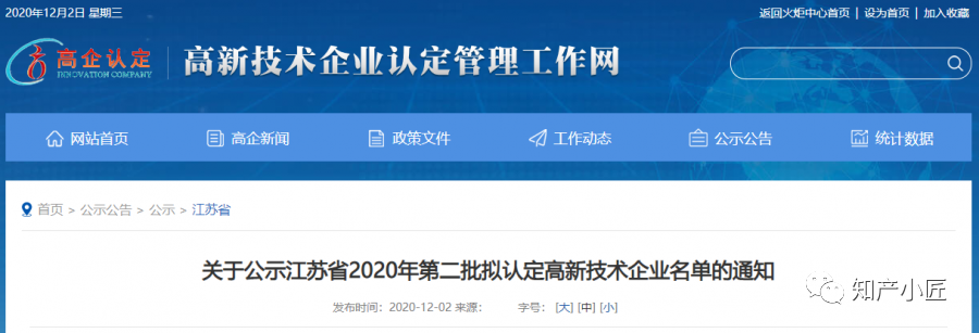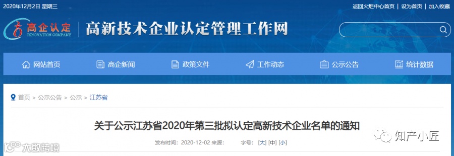 就在刚刚笔者从江苏省高新技术企业认定管理工作网获悉,江苏省2020年第一批、第二批、第三批拟定高新技术企业名单已经开始公示