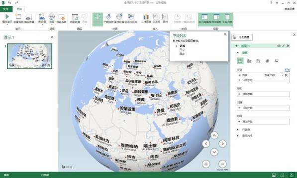 号称Excel地表最强可视化神器,Power Map是直接嵌套在Excel里的基于地图的可视化工具,效果如下图: