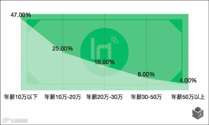 从图9可以看出,租房人群收入整体偏低。据链家和自如的统计数据,北京47%的租房人,年薪在10万以下,年薪10万~20万的人占到四分之一。收入低,房租却是个大支出,从房租收入比来看,北京有一半多的租房人,房租占收入的30%~50%。