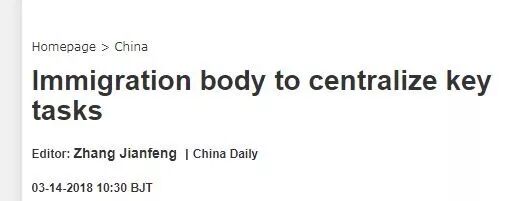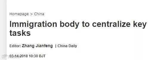 本周二,中国国务委员王勇在进行有关组建国家移民局的说明时称,为加强对移民及出入境管理的统筹协调,更好形成移民管理工作合力,方案提出,将公安部的出入境管理、边防检查职责整合,建立健全签证管理协调机制,组建国家移民管理局,由公安部管理。
