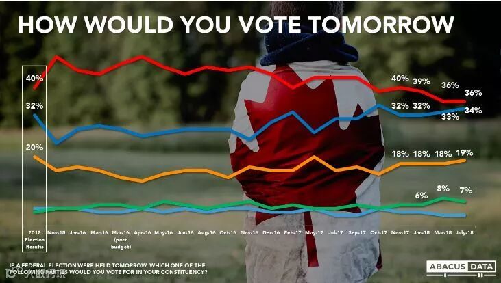目前的民意调查显示,保守党和自由党在全国范围的支持率基本持平。
