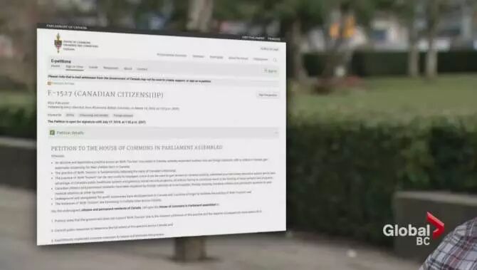 请愿书中写道:“生育旅游、双非婴儿的出现,是在从根本上降低加拿大公民身份的价值”。