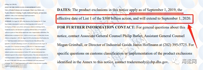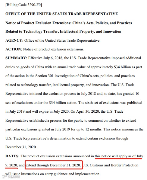2019年7月9日排除公告地址:https://ustr.gov/sites/default/files/enforcement/301Investigations/Notice_of_Product_Exclusions.pdf