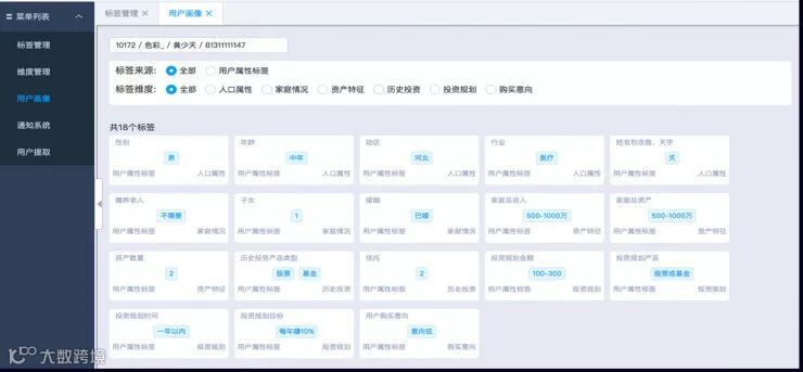 (3)用户画像系统:DNA系统的桥梁,抽象出用户的平台价值全貌。