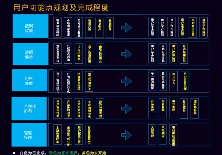 在财富管理领域,分享PPT上阐述的用户画像还是大家努力的方向,但因为国内人才严重缺乏,现在商业化的主要都是简单问卷,这也一部分是监管的原因。