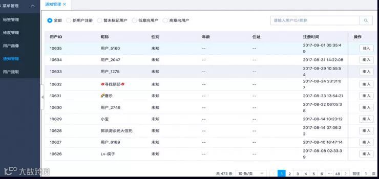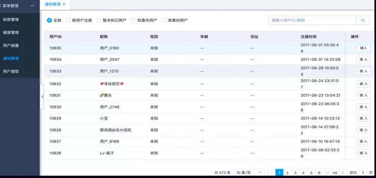 (4)用户提取:为营销活动、精准营销、用户挖掘与分析提供特定用户群的提取。