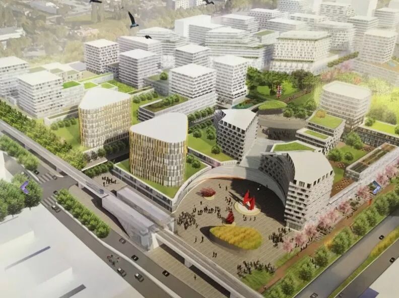 该项目将从3号路开始,将建造1745套公寓单位。还将在三号路沿线建造一个大型广场,每栋塔楼之间的停车场和低层商业建筑将采用绿色屋顶。